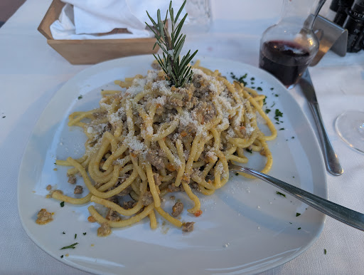Read moreLocale storico, in cui sono tornata dopo parecchi anni e ho apprezzato tantissimo la nuova gestione. Cucina ottima, sia nei primi che nei secondi, porzioni generose e personale educato, gentile e attenti. Non da tutti , e molto apprezzata la focaccia di "benvenuto" offerta all'arrivo, con pasta di pizza rucola e pomodorini tagliati a cubetti. Menù molto vario che accontenta tutti i gusti, anche dei giovani che prediligono hamburger o hot dog, decisamente di qualità e con patatine tagliate a mano. Ottimi i primi, anche i più semplici Spaghetti Monterosso, con aglio olio e pomodorini, al dente e gustosi. Ottima anche la carne alla griglia così come le pizze. I piatti sono serviti anche in maniera curata e decorata con erbette. Prezzi assolutamente contenuti e rapporto qualità prezzo ottimo. A pranzo ci sono anche due o tre proposte di menù a prezzo fisso, altrettanto molto apprezzate. Giardino esterno con tavoli ampio e...