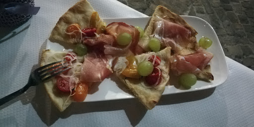 Trovato per caso mentre eravamo in zona, ho chiamato per prenotare la sera prima. La proprietaria mi ha chiesto di prenotare anche la carne che intendevo mangiare. Lì per lì mi è sembrata una richiesta un po' strana, poi lei mi ha spiegato per bene la cosa e il tutto ha acquistato un senso oltre che un enorme valore! Ho capito che era il posto giusto per mangiare ottima carne! All'arrivo (in due) veniamo accolti con tanta cordialità. Ci facciamo consigliare dalla proprietaria (la signora Annamaria, persona stupenda!) su antipasto e primo oltre alla tagliata e la grigliata mista che avevamo prenotato. L'antipasto, semplice ma buono, con pomodori grigliati, bruschette con carne e pomodorini, olive ascolane, simpaticamente arricchito con formaggio e pera, ci viene servito con una ottima focaccia mista (ottimo prosciutto, pomodorini e cipolle, uva bianca! Spettacolo!). Come primo abbiamo assaggiato i maccheroncini, uno dei piatti forti della casa. Erano a dir poco squisiti, buona la cottura (gli spaghettini non erano "incollati" come spesso accade con tipi di pasta particolari, né si spezzavano alla forchetta), il condimento profumava di pomodoro fresco (poi abbiamo scoperto che sono coltivati in proprio). Per finire la carne. La tagliata si scioglieva in bocca, una delizia. Anche il resto della grigliata davvero gustosa. Non siamo riusciti ad assaggiare i dolci (che a quanto pare sono sia originali che ottimi) perché già strapieni. Le portate sono davvero abbondanti. L'acqua è stata servita in bottiglia chiusa, i tavoli ben distanziati, posate igienizzate in sacchetti monouso. Non ho potuto fare a meno di notare l'attenzione del personale sulle regole di prevenzione COVID: informazioni e ordinazioni sempre a distanza, uso continuo di mascherine e OGNI SINGOLA VOLTA che veniva portato/rimosso un piatto a/da un tavolo l'uso di igienizzante per le mani. La location è una meraviglia, una piazzetta centrale del paesino di Altidona (già di suo posto stupendo!) "addobbata" in modo fantasioso e simpatico. Per quanto riguarda il conto, in risposta all'importo comunicatomi dalla proprietaria ho detto che forse si era sbagliata, avevamo mangiato di più! Lei mi ha guardato, ha fatto un bel sorriso e "no no, è giusto!". A Roma avrei pagato lo stesso solo per la tagliata,e non...