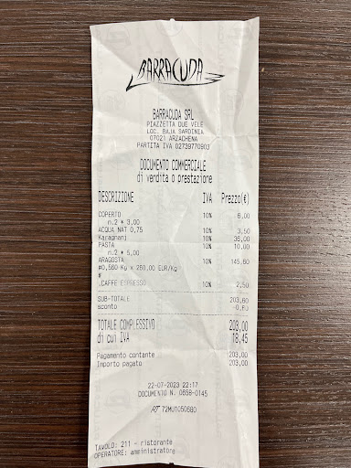 My husband and I went to have dinner on Friday evening at Barracuda Bar-Ristorante. The quality of the food was not what we expected. As a starter, we ordered a plate of grilled vegetables to share, and it came cold (we think it was probably cooked hours before and just reheated to serve it to us). After that disappointing first plate, we ordered one plate of pasta each. Once ordered, unexpectedly, a different waiter came and started laughing (like making fun of us) saying that “because of the humidity of the ambient" they have to use spaghetti instead of linguini". While saying that to us, he was watching the rest of the employees, trying to also make them laugh. We did not understand why all that was happening, and we respectfully asked him to then just change that plate and to please bring me the same as my husband ordered. Two minutes later, another waiter came and served me the wrong plate and said, "Sorry, but it was already prepared like that by the kitchen." We got upset since, for us, it was like a joke. So, Why did they ask us if we wanted some ingredients instead of others (laughing all the time) if food was already made and they were going to serve it to us anyway? We still think that young guys are making fun of their clients. So sad for that cool area. Fortunately, the rest of the restaurants in that area have serious workers, and they do not have waiters like that...