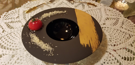 Honestly I was disappointed. It's not bad of course. I would not even say it it's overpriced. The service was great... but I'm sorry to say I was not at all impressed... with anything. Yes there was all the pompous and beautiful presentation of Michelin star dining, but the actual taste of everything and anything we tried... was meh. Including their own brand of champagne. Everything was fine but not great, interesting but not special, beautifully plated but nothing unique... The atmosphere about the same. Clearly someone worked very hard on the interior design, but that's just it, you feel it, how hard they tried, mixing a ton of different restaurant design trends that just don't really click all together. Personally I'm very allergic to dogs, so upon entering the restaurant and having four or five small dogs running freely to greet me I didn't appreciate. They were kind enough to secure the dogs in another area. Sincerely I would have never chosen the place had I known. The music was eclectic to put it politely, in italian they would refer to the playlist as a meatloaf. They arubtly stop the music to play happy birthday and clap for tables, then abruptly cut off the birthday song to search for a new song. There is no privacy. It's very small place, an open kitchen, and all of the tables in an intimate setting, everyone watching each other and easily able to listen to each others conversations. They seem to have no dress code nor age limits on kids.