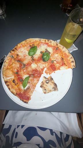 Ordiniamo la pizza. La Margherita costa 21 mentre le altre con vari condimenti 31 e oltre. Uno di noi chiede Margherita + tonno, e il cameriere ci dice che non si può fare. Che si possono solo togliere gli ingredienti, ma non aggiungerli. Il prezzo della pizza? Rimane comunque 31, anche se togli praticamente tutto tranne il tonno. Il cameriere è sinceramene dispiaciuto, ma questa è la politica del locale. Prendiamo 3 pizze e una pasta al pomodoro. Arrivano le pizze, la pasta al pomodoro no. Passa un po’ e chiediamo se è normale che noi mangiamo e una persona sta ancora aspettando la sua pasta. Si scusano e dopo altri 5 min circa arriva la pasta.