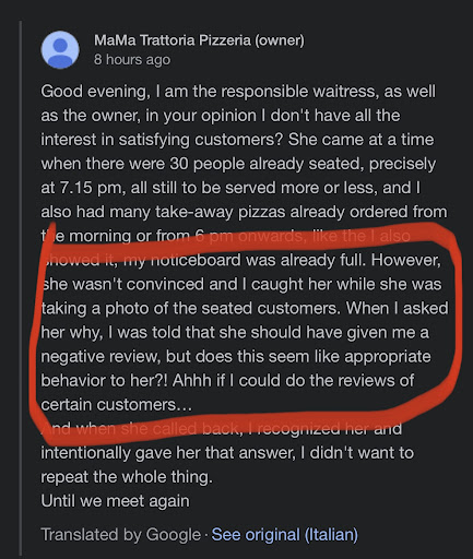 In the response to my friend’s review, a fair and neutral one, the person answering (who is actually the manager) lies that he did pictures to some seated customers and that my friend said to her that he will do a bad review. That didn’t happen, I was there…but hey, applause for creating drama against your potential customers. It is definitely better than the service you offer. 😅