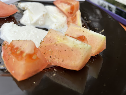 Looks nice but we had been waiting 40mins for just paninis! Other customers arrived later and got their burgers in 10 mins. We asked the reason. Answer - to many customers (see the photo). Look the tomatoes they use in the salad! That’s inSardinia in August! Guess speaking Italian does give you some...