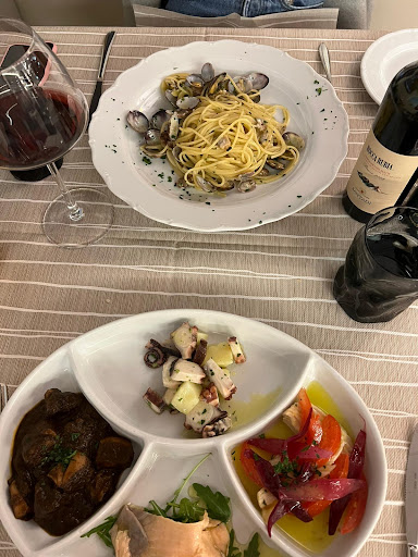 Total recommendation! We have been here three times and we were always super satisfied - both with the very friendly and highly motivated staff, who gave us personal recommendations on food and wine, were very patient with us (our Italian is basically nonexistent but some waitresses speak very good English) and even without a reservation found us a nice table on a very busy Saturday evening as well as with the incredible delicious meals. The size and quality of the portions (always fresh, regional/local produce, handmade pasta) is absolutely worth the price which even is to be considered low! Additionally the restaurant is very clean and has a wonderful atmosphere, located upstairs on the 1st floor with big windows and a nice view outside. We will come back and are already looking forward to the next...