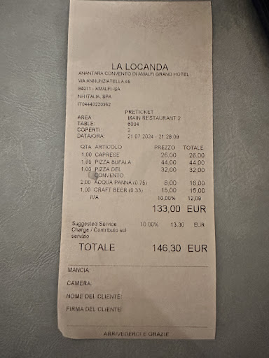 Ā Ā Ā Read moreIām sorry I have to leave a bad review to this place but it really didnāt deserve more than 2 starts. We had very high expectations given the brand behind hotel and the high rating but, starting the disorganized staff down to the missing details across the property, our experience was disappointing. The pizza looked amazing in photos but, in realty, was definitely not worth what they charge for it. I understand the surcharge that a guest must pay to dine along the Amalfi coast but an average of ā¬40 for a pizza that is undercooked and with an unbalanced taste doesnāt justify it. My 2 stars are mainly for the view and location, but the he food was not worth it at all. You can literally dine at a Michelin star restaurant in the area for the same price you pay for pizza here, except with a totally different experience and high level of service.