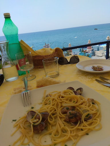 ย ย ย Read morestruttura anni 80,ma รจ la bellezza del mare a renderla suggestiva,grande terrazza dv cenare,foglio A4 volante x menรน (sic!!!), ci consigliano un vino "greco" ma ci portano una bottiglia giร stappata(cosi per loro consuetuine cm confermato dal cameriere che portava la stessa bottiglia senza tappo al tavolo di altri clienti, mentre il proprietario tentava di negare l'evidenza).Ordiniamo una porzione di crudite' da dividere in 4(consigliata sempre dal cameriere),seguita da altri 4 primi(2 paccheri ai gamberi e pom โฌ14,00/cad. e 2 spaghetti alle vongole โฌ 12,00/cad), oltre al vino "greco" (โฌ16,00), una bottiglia di acqua Lete, di โฌ2,00.Arriva il crudite'(in 2 piatti cn ostriche(fresche) gamberoni e scampi scguscuati con annesso filino nero(disgustoso!!!!), cn delicatezza lo facciamo notare al secondo cameriere che senza scusarsi ammette l'errore(รจ giร qlcs...).Arrivano i primi....spaghetti alle vongole insapori mantecati con il burro (cosรฌ da ammazzare la delicatezza dei molluschi) e i paccheri (Non al dente ma quasi crudi) con pomodoro (cotto male e semi crudo) e gamberi con l'immancabile intestino pieno di cacca!!!).Decidiamo di non prendere altro(x ovvi motivi) e chiediamo il conto tot โฌ120.00 cn sconto del 20%(prenotazione the forck) โฌ100,00 (deliriooooo).Contestiamo il totale al cameriere facendo presente che il crude' era 1 e non 4 cm scritto (x un avere pari ad โฌ50,50 da conto),il ql ci invita a raggiungere la cassa,li, il proprietario a suo dire voleva capire il problema, spieghiamo nuovamente qnt detto al cameriere e lui con un sorriso (da presa in giro) tentava di dire la sua...inutilmente xk decidiamo di pagare il giusto che da prezzo menu cn sconto theFork era โฌ 85,00.Inutile dire che non ci metteremo piรน piede!! cm al solito il ns bellissimo sud viene distrutto dalla inefficienza dei servizi...