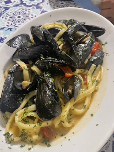 Come primo spaghetto con vongole e pacchetti allo scoglio. Sul pacchero nulla da dire OTTIMO!! anzi vi consiglio di prenderlo assolutamente! Lo spaghetto anche molto buono l’unica nota che mi ha fatto un po’ innervosire è stato che dopo aver finito vedevo che gli altri tavoli avevano preso lo stesso piatto con una portata molto più generosa sia di pasta che di pesce. Questa cosa è fastidiosa perché si paga lo stesso prezzo per meno e non si tiene attenzione alla portate. Il cliente lo nota!