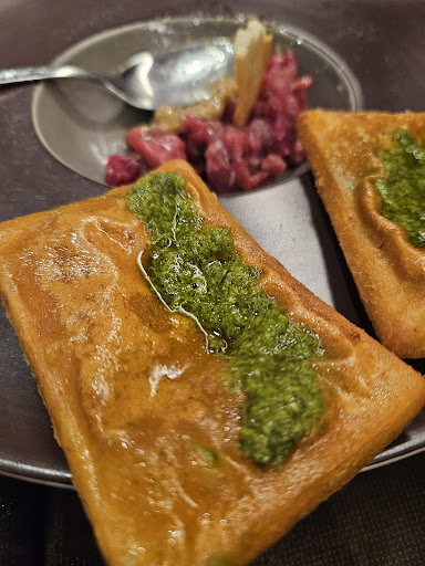 Read moreChe dire? Accoglienza favolosa, posto stupendo, possibilità di mangiare all’aperto in tutta tranquillità e cibo ottimo, squisito e di qualità. Siamo arrivati in moto ed abbiamo scelto il locale semplicemente passando perché già a prima vista da un’idea di qualcosa di diverso e di giovanile… ed il pensiero è stato poi confermato da tutta l’esperienza culinaria. Abbiamo ordinato la gricia e non ci sono parole che possano descriverne la bontà… per secondo, essendo il mio compagno appassionato di carne, incontro ravvicinato con lo chef 🤣 per una spiegazione dettagliata delle varie carni presenti e relativa provenienza e frollatura; grazie chef per la pazienza 🤣… ed anche con il secondo, si sono superati, carne squisita, cottura perfetta ed accompagnata da vari sali per poter assaporarla al meglio. Al dolce questa volta non ci siamo arrivati, eravamo già pieni 🤭… ma torneremo, perché ho un conto in sospeso con il dolce appunto. Grazie mille e...