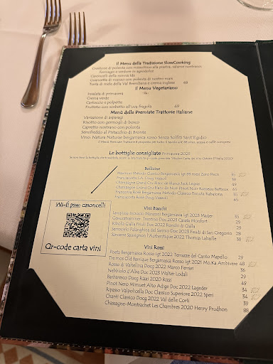 Read moreSulle colline bergamasche decidiamo di fare tappa in questo storico ristorante che è inserito d’ufficio nella mia personale lista dei locali da provare in quanto parte del gruppo delle Premiate Trattorie Italiane. Le aspettative sono pienamente appagate, a cominciare dalla location che è molto molto bella, gli interni sono divisi in diversi ambienti, più o meno ampi e noi abbiamo la fortuna di avere una sala riservata con un tavolo da 6 tutta per noi. Molto bella è stata la visita a fine cena che ci è stata concessa nella loro cantina. Già, i vini…un capitolo a parte meriterebbero solo loro, in quanto indiscussi protagonisti della loro offerta. Davvero ben costruita la lista, per estensione e profondità, con una nota di merito alle etichette del territorio, un territorio poco conosciuto, ma di grandissimo spessore, da cui noi abbiamo attinto pasteggiando con un ottimo taglio bordolese, Merlot e Cabernet Sauvignon: Il Gavazzeni 2019 di La Cornasella. Ogni piatto che abbiamo provato ha riscosso consenso unanime, i primi piatti su tutti. Io e i miei figli abbiamo preso delle fantastice pappardelle con ragù di coniglio e anatra con grattata di storico ribelle. Davvero eccezionale la fattura delle papardelle e la cottura. Poi la qualità del ragù, nobilitato dal presidio slow food del formaggio hanno fatto il resto. Promossi a pieni voti anche i casoncelli, una sorta di signature per questa trattoria, che ripropone la ricetta della nonna del 1932. Ho poi proseguito con un delizioso capretto nostrano al forno, adagiato su polenta di mais rostrato rosso dell'isola e patate arrosto. Cottura del capretto perfetta, ma io qui sono stato rapito dalla polenta, molto particolare ed effettivamente l’utilizzo di questo mais particolare fa la differenza. Ho chiuso la mia cena con una carrellata di formaggi, anzi con una carrellata di presidi Slow Food dato che ho gustato dello storico ribelle, l’Agri di Valtorta, lo stracchino all’antica delle Valli Orobiche, lo Strachitunt e del Formai de Mut. Un’esperienza...