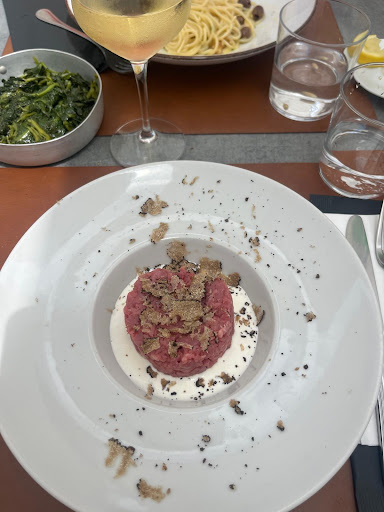 Read moreHo pranzato in questo ristorante nel borgo di Montemarcello dopo un'escursione sul promontorio. Appena arrivata, ma senza molte altre alternative, ho subito notato il menù poco intrigante e senza un'anima definita, né tradizione toscana, né ligure, né una cucina un minimo creativa. Passati ai piatti la prima impressione non si è smentita. Pappardelle al cinghiale che di fatto erano un piatto di pasta al sugo. Pochissima carne e sugo liquido. Andrebbe aumentata significativa menti la quantità di carne e la cottura del sugo per rendere il sugo più ristretto e saporito. Suggerisco inoltre di non tritare la carne a macchina ma di sfilacciarla o tritarla a mano, il risultato è migliore e più si presta alla selvaggina. Inoltre anche il parmigiano sulla pasta era davvero scarso, sarebbe più cortese portarlo al tavolo al cliente oppure farlo servire al cameriere davanti al cliente in modo da dare al cliente la quantità desiderata. Passiamo al secondo, ho optato per una frittura di alici, davvero povera. Alici infarinate e fritte in un piatto con uno spicchio di limone per 15 euro. Ecco, questo è quello che mi aspetto da uno street food in piazza che mi vende un cono di alici, da un ristorante sicuramente qualcosa di più. Magari, se non si vuole aumentare la varietà di pesce, si potrebbe almeno proporre una frittura di alici in diversi modi, infarinate con qualche salsa di accompagnamento, impanate, ripiene...In più le alici non erano così piccole e la lisca dava fastidio, non essendo disliscate l'ho quindi dovuto fare in autonomia. Un pranzo spento, con poco gusto...