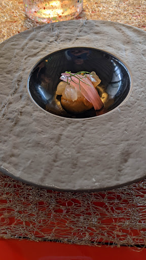 Read moreCredo che giudicare questo ristorante è di per sé giudicare un esperienza sua culinaria che visiva. Montemarcello in ogni angolo regala viste mozzafiato e qui ne avete una sua che vi fermiate a fare un aperitivo (sulla terrazza di fronte al ristorante) oppure anche dall'interno del ristorante stesso. Per quanto riguarda l'aperitivo vi consiglio in modo spassionato di prenotare (meglio secondo turno) onde evitare di essere "rimbalzati" il che sarebbe un peccato. Unico neo forse se scegliete il primo turno (19-20) i camerieri vi mettono "pressione" per liberare il tavolo....cosa non molto carina...anche perché credo che se vi danno un ora dove lasciare il tavolo... normalmente minuto più minuto meno...lo si lascia godere anche ad altri. Per il ristorante devo fare solo complimenti sia nella scelta delle materie prime che nella presentazione dei piatti.. personale estremamente cortese e ben disponibile a spiegare ogni portata. Faccio anche un excursus sul bagno.... originale... merita se ne avete necessità un momento da "dedicarcisi". Una serata da...