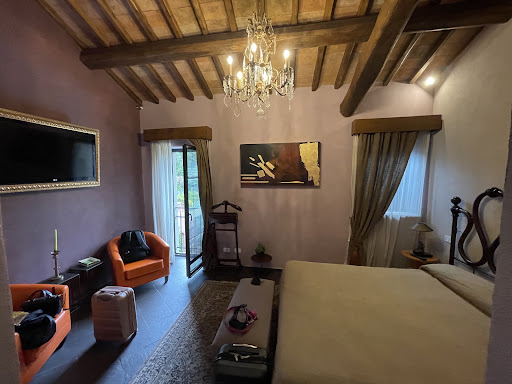The photo on Trip Advisor doesn't do justice to the charm, gorgeous setting and Maria's (the owner's) hospitality. The place is a mix of original farmhouse character and avante garde design. We plan to come back and recommend it highly. If you're a little adventurous, looking for a serene country setting in the heart of untouristy Umbria, and don't need the Ritz-Carlton, this place offers a wonderful and different vacation experience. We were the only Americans here at the time and speak no Italian but got along just fine.||||The rooms, suites and apartments are decorated in good taste and quirky design. My husband and I stayed in the deluxe double room (called Dulasia) on the second floor at the beginning of May, which was considered mid-season rates for about $120 a night, including breakfast. ||||When we decided to visit Umbria this Spring, we selected the small gem-of-a-town Amelia because of its central location to the other hill towns we wanted to visit. We weren't sure about our decision to stay here because there were not many reviews in English and the both the arial and visual photos gave us the impression that this was just a reasonably priced, mediocre b&b. Well it's much more than that. The views of expansive fields in a valley next to lavish green forested hills is breath-taking. The Michelin rated dining room with a chef trained at NY's Cipriani offers a nice selection of locally grown and inventive Umbrian cuisine with a ma-and-pa atmosphere. The restaurant has a great local reputation and people we met from the area recommended the restaurant highly rated; in fact, one of the nights we ate there, there was a private party of 20 or so people at the table next to us. ||||Our room with a big operable window overlooking the pool had a wood plank ceiling from which hung an elaborate crystal chandelier; the brand new large bathtub had purple and blue light options, flanked by ornate columns and elaborate drapes--too complicated and quirky to describe, but what a creative, beautiful overall effect. The bed was comfortable and the...
