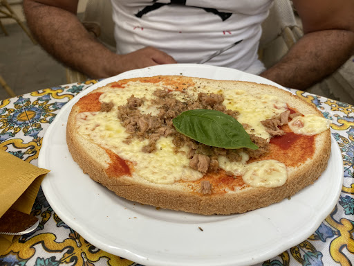 This place was terrible and put a damper on our day trip to Capri. The pasta was like something a 12 year-old might make with some expired pasta and a can of tomato sauce. The bruschetta (not pizza, they do not serve pizza) seemed to be made with the driest sliced bread they could find, an unidentifiable sliced cheese, and some very strange canned tuna. My son usually has no problem eating a tuna sandwich with tuna transferred directly from the can and not even he could eat it.