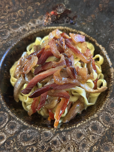 Come piatto del giorno abbiamo assaggiato una zuppa di legumi e castagne con salsiccia sbriciolata croccante: un inizio davvero squisito! Ottima anche la tagliatella fatta in casa con porcini, pomodorini secchi e guanciale croccante. Contrariamente a una recensione che avevamo letto, che definiva il gusto “slegato”, abbiamo invece apprezzato proprio la possibilità di riconoscere distintamente ogni sapore: per noi un vero punto di forza, non certo una penalizzazione.
