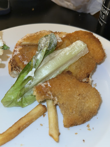Read moreWe got food delivered through the Deliveroo app. It was by far one of the worst experiences: the food is stale and tasteless, the fries are made using old oil and are bitter. The burgers have chunks of lettuce in them that include the stems. Chicken cutlets are so disgusting they remind me of baby food. Absolute atrocity. Cannot speak on the restaurant service, but never even considering getting food...