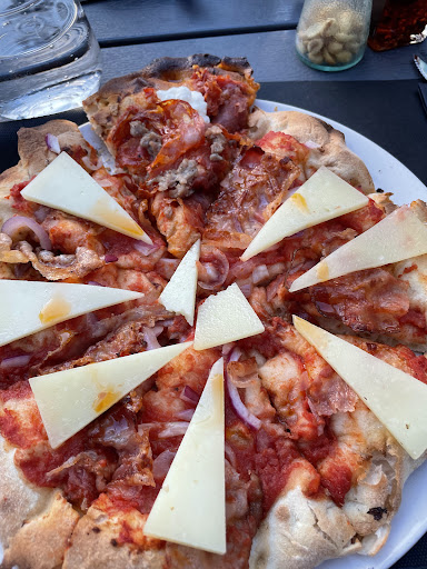 Allora, questa è la recensione più veritiera su questa pizzeria che potete leggere: per prima cosa partiamo piano... Il servizio è abbastanza veloce e il personale è gentile, bagni puliti e tavoli puliti sia all aperto sia al chiuso, ma al chiuso li aprono solo se fuori è pieno. Spazioso tutto e bello fuori e dentro, ma ora andiamo a recensire com è il CIBO: siamo andati in 3 a mangiarci e abbiamo ordinato una pizza ai 4 formaggi, una ai funghi e una speciale fuori menù con guanciale, mozzarella e pomodori. Dopo aver atteso 10 min (Il locale era quasi vuoto di sabato sera) ci sono arrivate tutte e 3 insieme le pizze. Quella ai 4 formaggi era una pizza normalissima, come quella di altre pizzerie di livello medio-basso(pagata 11 euro). Quella ai funghi uguale...(pagata 11 euro) normalissima. E ora andiamo a quella speciale: QUI L AVETE FATTA GROSSA!!! FAR PAGARE JNA PIZZA 17 EURO!!!! E qui voi direte: è una pizza speciale e ci sono ingredienti speciali, MA NOOO!!! C ERANO 4 PEZZETTINI MICROSCOPICI DI GUANCIALE!!! NEANCHE SI SENTIVANO IN BOCCA! IO PAGO 17 EURO E NON MI DATE NEANCHE MEZZA FETTINA DI GUANCIALE?! Mai più!!! Non ci andate! LA COSA BELLA È CHE C ERANO 74 POMODORI SOPRA! INVECE DI CAMUFFARLA CON POMODORI, METTETECI PIÙ GUANCIALE!!!!!!!!!!!!!!! PERCHÈ FATE COSÌ?!?!?!?!? TOTALE PER 3 PERSONE 50€!!!!! INCLUSA ACQUA E COPERTO E COCA. Per fortuna vostra vi siete beccati una recensione verissima cattiva per non mettere 2 fettine di guanciale in più! CI ANDAVATE IN PERDITA PER CASO? TIRCHI. L ambiente è un po imboscato ma non difficileda...