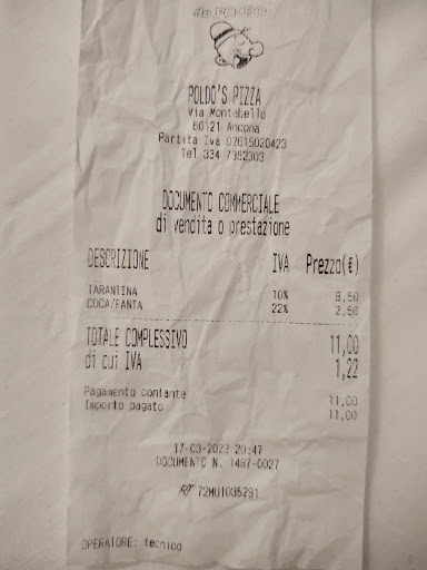 Read moreLe pucce saranno pure discrete (pizza no), ma purtroppo il problema è la comunicazione (e forse la capacità di comprendere di chi mette in forno). Negli anni, ho per ben 2 volte smesso di ordinare le cose da loro (colpa mia che ci ricasco, ma come dicevo le cose sono discrete e in passato ho avuto modo di conoscere il titolare, Edoardo, che è persona simpatica e con molta più testa..n.b. lavora in altro negozio). Ogni volta che ordino una variazione rispetto alla puccia in menù, la sbagliano o non ne tengono conto. La mia compagna ordina sempre puccia con prosciutto crudo, ketchup e patatine (difficile??) e le sbagliano costantemente la consegna. Stasera, per evitare fraintendimenti, ha anche ripetuto due volte a chi prende le telefonate, la sua richiesta. Ma niente, arrivata puccia sbagliata (per l'ennesima volta). Abbiamo chiamato riportando l'accaduto e dopo mezz'ora ci arriva quella giusta(c'era comunque una foglia di insalata esclusa dagli ingredienti..poco male). Ergo, ogni volta che ordiniamo da Poldo (ripeto, dopo che il titolare, Edoardo, è andato in via torresi), la mia compagna mangia da sola. Se dovessi riordinare da loro (al momento voglia 0), ordinerò in via Torresi..visto mai che lì si riesca ad avere la...