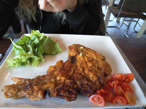 Read moreHo ordinato un piatto di gnocchi con pistacchi e pancetta croccante preso dal meù e a voce una cotoletta fritta con le patatine per mia figlia, tipica richiesta di bambini/ragazzi. Tempi di evasione delle comande esageratamente lunghi, considerato che il locale era per metà occupato (parliamo di un lunedì a pranzo), stimati in 35/40 minuti di attesa, poi mi portano prima gli gnocchi, che devo dire in tutta onestà erano molto buoni e dopo parecchio quella che doveva essere una classica cotoletta di petto di pollo/vitello impanata e fritta con annesse patatine fritte, si era trasformata in una "costoletta" alla milanese fritta: praticamente un pezzo di brontosauro con osso di notevole grandezza e alto 4cm circa (allego foto). Inutile dire che il piatto esattamente come è arrivato e ritornato indietro, mia figlia ha mangiato 4 patatine di numero e vista l'ora che si era fatta me ne sono andato (attaccavo a lavoro alle 14:30 e mi hanno portato quel secondo alle 14:15). Mi hanno fatto pagare anche la costoletta, nonostante non era neanche lontanamente quello che avevo richiesto, e per correttezza devo dire che mi hanno scontato 5 euro dal totale. Errore mio o male interpretazione loro non lo so, ma come era la prima volta che ci andavo a mangiare sarà anche l'ultima che mi vedranno, e hanno ovviamente perso più di un cliente perchè usciamo in gruppo e il passaparola sarà una...