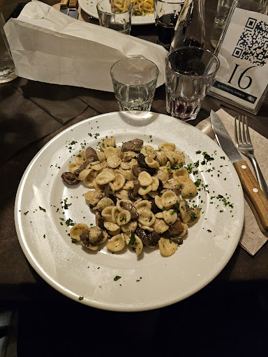 I primi uno strazio, mi dispiace dirlo ma nemmeno all'estero ho mangiato 2 primi così. La carbonara era praticamente un cacio&pepe e la pasta (tipo chitarrine) dura, come se fosse cruda. Le pappardelle al ragù di scottona (nel menù dicevano ragù bianco) sono arrivate rosse (poco importa) ..carne del sugo ottima, troppo forte il sapore di una spezia (forse chiodo di garofano) ...ma la cosa più fastidiosa sono state le pappardelle durissime , penso anche queste poco cotte o fatte artigianalmente ma male.
