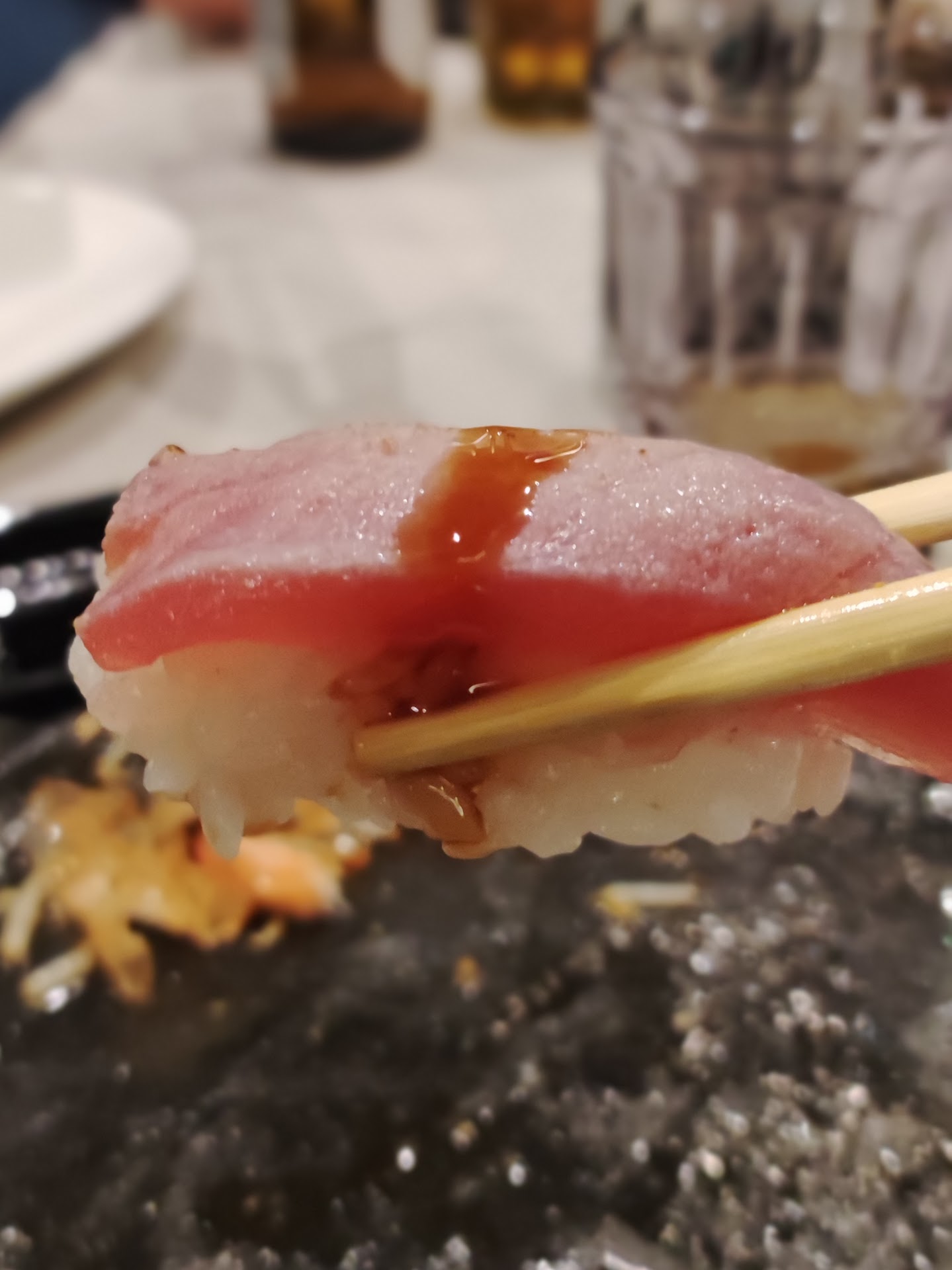 Arrivati un pochino più tardi causa incidente per strada. Da quando siamo entrati fino a quando siamo usciti siamo Stati con i "camerieri alle calcagna", Nel senso: avevano una fretta assurda di chiudere, e dal momento in cui ci siamo seduti, hanno cominciato a pressare per farci ordinare e mangiare tutto il prima possibile venendo a chiedere ogni 3x2 se dovevamo riordinare(con i piatti appena arrivati al tavolo),ripetendo varie volte che la cucina chiudeva. In tutto questo avevamo affianco una tavolata di forse 8 persone con tutti i piatti sulla tavola e portate ancora non toccate. Addirittura mi hanno levato il piatto da sotto mentre stavo ancora mangiando facendomi sentire a disagio(avendo gente intorno che guardava) e facendo gocciolare tutta la soia nella tovaglia aggiungendo il rischio di potermi sporcare la camicia. In tutto questo avevamo il tavolo sparecchiato ancora prima che arrivassimo a fine pasto, mentre la tavolata a fianco e gli altri, avevano ancora tutte le cose da iniziare a mangiare, piatti sulla tavola, bicchieri e piatti semi vuoti. Ci sono modi e modi di comunicazione al cliente, e levare il piatto da dove sto mangiando, venendo a pressare 5 volte nel giro di 20 minuti, sparecchiare mentre ancora tutti stanno mangiando è scortese,maleducato e oltre a farti sentire in imbarazzo ,essendo gli unici ad aver ricevuto questo servizio in quel momento anche se altri avevano ancora roba che arrivava o piatti vuoti sul tavolo, aumenta il rischio di poterti sporcare. Il cibo e le pietanze nel complesso sono ottimi connubi di sapori molto curiosi e affascinanti, prodotti freschi,cura dei dettagli ed equilibrio dei sapori molto ben impostati. Resta la pecca del servizio, che purtroppo si è mostrato scortese e maleducato. Cioè se mi fai entrare e mi devo strafogare perché dovete preparare per la sera, e per prendere i soldi, a questo punto dimmi che sei chiuso. Anche perché potete avere i super piatti e la qualità stratosferica ma se il trattamento diventa questo quando arrivi in orari un po' così allora si va altrove. Mai successo che mi sia stato tolto il piatto mentre...