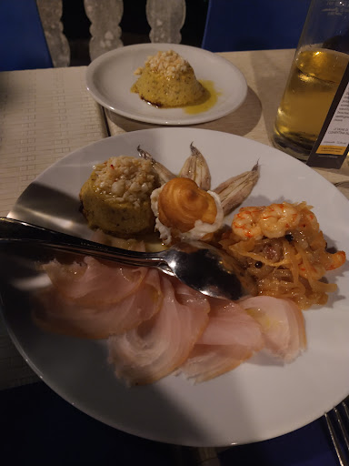 Stasera io e le mie amiche ( in vacanza nella zona) siamo state a mangiare a questo ristorante. Purtroppo per noi siamo arrivate solo all'imbrunire ( a tarda serata) e non ci siamo godute a pieno il panorama che si può vedere dalla Terrazza,allestita in modo molto carino e in stile marinaro. Siamo state trattate in modo estremamente gentile dal personale, dal momento in cui siamo arrivate fino alla fine. Nel menù il pesce è sicuramente il protagonista: tanti piatti tra cui non sapevamo cosa scegliere! Il proprietario ci ha consigliato un mix di antipasti così abbiamo potuto assaggiare un po' tutto ( a dir poco squisito! super consigliato il tortino zucchine e gamberetti , la zuppa di cozze -detti moscioli- buonissima , si percepiva la qualità,anche se a parer nostro un po' piccantina) Poi abbiamo preso tagliatelle di mare bianco e due parmigiane di baccalá(quest'ultime veramente meravigliose, però consiglio: riempiono molto quindi forse insieme ad antipasto e primo diventa un po' "tanto"). Abbiamo accompagnato la cena con acqua e vino in brocca di due tipi : Passerina e un bianco più secco: buoni entrambi, con ciò che abbiamo mangiato abbiamo apprezzato di più la Passerina. I proprietari ci hanno offerto limoncello a fine pasto , abbiamo evitato caffè e dolci. Ci hanno pure fatto lo sconto a fine cena per fare "conto pari". Conto comunque giusto per ciò che abbiamo mangiato.