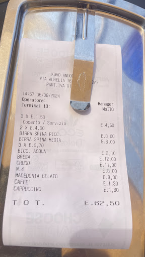 Read moreSiamo stati qui per l’aperitivo. Siamo stati altre volte e i prezzi dei cocktail già all’epoca ci erano sembrati un po’ alti per la location e il paese. Detto ciò, siamo tornati per dargli un’altra chance ma mi spiace dire che sarà l’ultima. I cocktail sono buoni ma ripeto, cari per essere ad Andora (prezzi più alti della media di Alassio). Il tagliere aveva alcune cose buone e altre decisamente no, la focaccia ad esempio era secchissima e da evitare di servire. Prendiamo un paloma e un limoncello spritz, segnati sul menù rispettivamente a 10 e 9€. Al momento di pagare, il cocktail Paloma ci viene fatto pagare 12€ giustificandosi dicendo che non avevano aggiornato il menù e dicendo “ah, non ve l’hanno detto?”. Ora, al netto che non sono 2€ di differenza a cambiare il mondo mi sembra davvero poco corretto che al momento dell’ordine questa cosa non sia stata comunicata e che per superficialità di attenzione sui prezzi segnati sul menù alla fine debba rimetterci il cliente. La cosa più corretta da fare sarebbe stata far pagare quel cocktail il prezzo segnato sul menù e di cui la variazione a voce non era stata comunicata. Viviamo qui e ci capita di fare aperitivo molto spesso ad Andora, forse un po’ di attenzione in più, almeno verso le persone del posto che vedi spesso,...