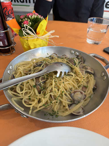 Dieses Jahr haben wir vor Ort im Restaurant gegessen. Wir bekamen einen Tisch an der Wand wo unser Hund gut abgelegt werden konnte. Ich hatte einen ersten Gang, (Spaghetti mit Muscheln und Meeresfrűchten) der so groß war, dass locker drei Personen davon hätten essen können. Gott sei Dank war mein Milanese Schnitzel relativ flach, dass ich es irgendwie geschafft habe alles zu essen. Nein erster Gang war fantastisch, so frisch und lecker. Mein zweiter hatte eher den deutschen panierten Schnitzel entsprochen. Auch die anderen beiden Gerichte waren hervorragend. Das einzige was mir nicht so gefallen hat war, dass das Lokal sehr hell war, sehr laut.. Was aber dem Temperament der Italiener geschuldet ist 🤣ein Gespräch zu zweit kaum möglich. Was wir super fanden, war dass nur Italiener dort gegessen haben. Ein gutes Zeichen. 😊 Der Service war nicht unfreundlich, aber sehr kühl und distanziert, da hätte ich mir mehr Herzlichkeit gewünscht. Alles in allem sehr lecker gegessen. Würde wahrscheinlich eher wieder zum...