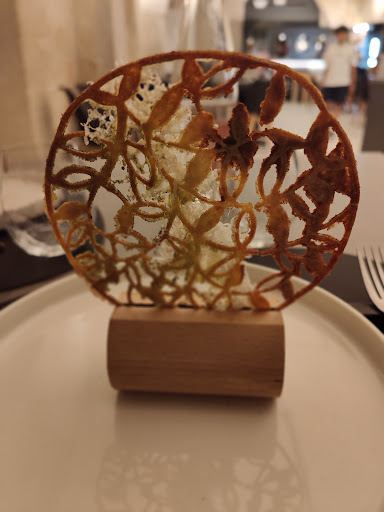 Read moreLocale con un ambiente molto minimal chic dove spiccano i muri tutti con pietra a vista. Personale attento cortese e disponibile. Preso il menù degustazione con 5 portate che è composto da una entree e 5 tranci di pizza scelti dal pizzaiolo (ovviamente se non ci sono allergie intolleranze o non ci piacciono determinati ingredienti). L' impasto della pizza è veramente buono e le farciture ricercate e particolari. Unici due appunti ma dettati dal mio gusto personale le Chips di pomodoro della pizza ai 4 pomodori non erano croccanti e davano la sensazione di mangiarne quasi la buccia,e il trancio di pizza nella versione dolce che viene cotto un po' di più risultando biscottato sui bordi. Possibilità di portare il mostro amico a 4 zampe. Locale molto...