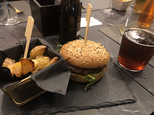 Locale molto interessante situato nel pieno centro di Andria con posti a sedere sia fuori che dentro. La particolarità di questo posto è la varietà di cocktail e spritz tutti molto buoni.Non mancano anche piatti come panini di terra e mare (solo uno per parte) piadine, pinse e taglieri. I prezzi sono alti, il servizio al tavolo è ottimo. Il locale offre musica dal vivo, anche se secondo me un po’ troppo alta. Posto da provare soprattutto per i cocktail. In foto il panino di terra con cipolla caramellata bacon e hamburger servito con patate al forno e piadina con tartare salmone, olive nere...