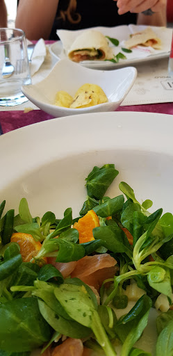 Read moreLeggendo le recensioni penso che siamo state sfortunate, però la mia esperienza è di un pranzo che è stato un furto. Tornate dalla Rocca e in attesa del primo battello utile ci fermiamo qui. Dehor carino. La cameriera ci ha elencato i piatti del giorno che forse avremmo dovuto preferire, invece optiamo per qualcosa di leggero. Insalata Angleria e piadina Capoliveri. Entrambe le preparazioni prevedono il salmone affumicato. Arrivano i piatti (dopo una certa attesa) e siamo incredule. La mia insalata sono 4 ciuffi di valeriana con altrettanti pezzetti di arancia, cuori di palma della dimensione di un sassolino e 4 petali minuscoli di salmone. Sarà stata al massimo 1 fettina di quelle del salmone preaffettato delle buste. Ancora peggio è andata a mia sorella: piadina industriale piccolissima, nemmeno scaldata a dovere con dentro pomodoro e lattuga sconditi e 1 pezzetto di salmone minuscolo. Nella mia insalata mancavano pure le olive che erano segnate come ingrediente nel menù. Non so francamente cosa sia successo, se il salmone è caro e allora lo centellinano o lo stavano finendo e hanno deciso di darcene 10 grammi a testa.. perché altri panini che ho sbirciato ai tavoli vicini sembravano riempiti a dovere. Sta di fatto che ci è sembrata una presa in giro. Abbiamo pagato i nostri 18 euro e siamo andate ad Arona a riempirci lo stomaco con un gelato perché stavamo morendo di fame. I dolci all'interno avevano un ottimo aspetto ma a quel punto per principio non li...