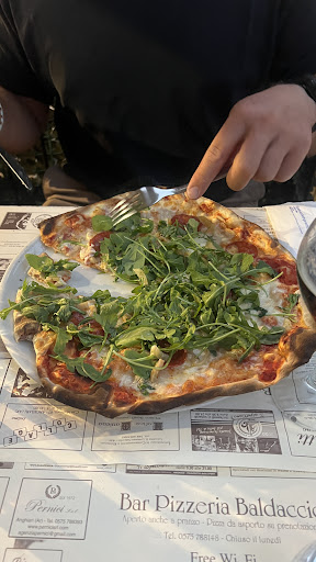 My wife and I rented an apartment in the walled town of Anghiari, Italy. Our flight was diverted so we did not arrive until 11:30pm. The caretaker recommended we go to Bar Pizzeria Baldoccio for a very late night dinner. It was 11:45pm when we arrived - they close at 12:00 The chairs were already upside down on the tables and the floor had been washed in preparation for closing. Notwithstanding, we were welcomed with open arms, ordered wine and wonderful Italian this crust pizza. We stopped in three other times, and each time we were welcomed as if family. Great food, decent inexpensive wine, great atmosphere - both inside and outside...