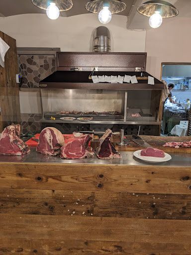 Prima di raccontare la delusione, esordisco dicendo che la carne è oggettivamente buona, abbiamo ordinato una bistecca locale, cottura come richiesta e qualitá indiscutibile. Si perdono completamente in tutto il resto, locale basico, ambiente da tavola calda, servizio improvvisato, ciò che non è carne alla brace da lasciar perdere. Abbiamo cenato a dicembre e la sala era davvero gelida nonostante un condizionatore acceso ma evidentemente inefficace, infatti abbiamo chiesto di spostarci al tavolo di fronte l'area del braciere così da avere almeno un po' di calore. I camerieri ed il ragazzo addetto alla cottura della carne sono gentili, peccato non ci sia alcuna minima presentazione delle portate ad esempio "le bruschette miste" che abbiamo dovuto assaggiare e giocare ad indovinare.. Inoltre assurdo direi ricevere bruschette ricoperte di patè stile anni 80/90, davvero senza parole, soprattutto perché non si è in un autogrill. (E qui tutte quelle belle bruschette toscane con il lardo di colonnata e il tartufo muoiono, lasciando posto a patè di fegato e patè di radicchio con qualcos'altro di non identificato) Di contorno abbiamo ordinato spinaci in padella, ed erano talmente cotti che erano patè pure quelli, buoni da spalmare su un'altra bruschetta... Infatti lasciati quasi interamente nel piatto. Il dolce non lo abbiamo provato. L'idea della braceria è ottima vista la fortuna di avere un allevamento proprio, però da rivedere tutto il resto perchè avreste molte potenzialitá data l'oggettiva qualitá del prodotto. Peccato. Non ci tornerei tantomeno lo consiglierei soprattutto perche in toscana è pieno di bracerie di carni locali e genuine dove la qualitá...