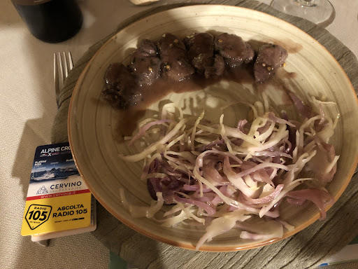 Read moreIl locale è esteticamente molto carino ed invitante. Siamo entrati ed il cameriere ci ha invitati a trovare un tavolo libero piuttosto che farci accomodare seguendolo. Abbiamo poi capito che in sala c’era solamente lui, sala a metà capienza, 15 coperti occupati. Chiaramente sotto di personale, il ragazzo ha una 20ina d’anni, si impegna ma non è ancora capace. Non tanto per la quantità di coperti da gestire quanto per la conoscenza del mestiere e dei modi di lavorare come tale. Vino (Bruciato Bolgheri 35€) servito, a detta del cameriere, che era anche direttore di sala, a 12 C. È rimasto freddo in calice a lungo, più a lungo di quanto serve per terminare una porzione. Maltrattato, fondo quasi tutto in sospensione nel vino. Ce ne siamo resi conto, purtroppo, solamente dopo aver dato il nostro consenso in seguito all’assaggio (no tappo). Purtroppo i piatti ed il vino non erano all’altezza del posto e soprattutto del prezzo. L’antipasto ad esempio (biscotto, lardo, pera in vino e gorgonzola) era - a differenza del resto - ottimo, ma striminzito; sicuramente la quantità non era da 15€, per quanto riguarda la qualità, discutibile. Stiamo parlando di un peso ingredienti complessivi intorno ai 100g. Incluse le pere. I secondi di qualità veramente scarsa, ad un prezzo da bib gourmand, o forse anche più: 20€. Coscia d’anatra, cervo e filetto di maiale. Non sapevano di nulla. A mio avviso stiamo parlando di qualità da mensa e food cost sotto al 10%. Temperatura dei secondi totalmente toppata, piatti freddi. Se si considera poi l’esiguità del cibo, è facile comprendere come si fosse potuto freddare velocemente. Contorni ugualmente freddi ma soprattutto, sicuramente, da busta (pronti e impacchettati da grossista). Sebbene in Italia non ci si creda ancora abbastanza, pane comunque sia da discount. Non abbiamo potuto veramente far altro che rifiutare i caffè e i digestivi offerti come obolo. Una...