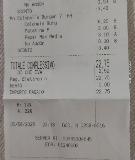Read moreTralasciando l’organizzazione e le dimensioni del posto che si commentano da sole… dato che per la lentezza del personale la fila si accumulava a tal punto da disturbare chi consumava il cibo al tavolo, già di per sè infastidito dall’impossibilità di mangiare tranquillamente dato che ogni due per tre erano costretti ad alzarsi per far passare le altre persone dato il poco spazio. Livello di igene scarsissimo dato che i secchi straripavano e i tavoli ce li siamo dovuti pulire da soli. La qualità del cibo è davvero scarsa, il pollo invece che fritto sembrava lesso e la panatura invece che croccante era molle e acquosa, stessa cosa per le patatine, che sapevano solo di olio, per non aggiungere il fatto che il bacon era crudo e il cheddar sopra le patatine era pochissimo. Il sapore del pollo inesistente dato che il tutto era ricoperto da una salsa al pepe salatissima. detto ció, a due giorni da questa bruttissima esperienza, sia io che le altre persone che hanno mangiato con me, stanno riscontrando forti dolori di pancia e problemi intestinali. consiglierei di rivedere sia il personale che la conservazione e la qualità del cibo, dato che in nessun fast food ci siamo sentiti...