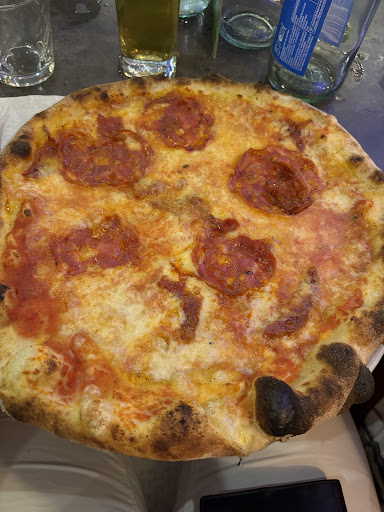 Read morec'è sicuramente di meglio. Ho mangiato in questa pizzeria a cena e non credo di tornarci. Ci hanno fatto accomodare in un tavolo interno. C'era un caldo da paura all'interno della pizzeria tanto da far sudare me e i miei amici dall'inizio alla fine della cena. Condizionatori rigorosamente spenti. I ragazzi che servivano a tavola erano tutti gentili e simpatici ma troppo frenetici, probabilmente troppo pochi rispetto alle persone da servire, frenesia che trasmettono al cliente e che inficia sulla qualità del servizio con evidenti ma giustificate defaillance. Ne risulta un servizio troppo veloce e poco attento. Piatti escono troppo in fretta. Non avevamo finito gli antipasti che sono arrivate le pizze, forse sintomo di scarsissima coordinazione tra sala e cucina. Cibo... un po' deluso.Antipasti fritti buoni ma troppo pieni di olio. Fritto non vuol dire unto. Pizza dai sapori abbastanza buoni ma impasto che non mi è piaciuto. Se si ordina una pizza normale, arriva il classico biscottone romano che sborda dal piatto, che può piacere oppure no, fatto sta che non è la pizza. Se si ordina invece l'impasto "napoletano", si paga un euro in più per avere sostanzialmente lo stesso impasto ma tirato di meno, che sta di gran lunga all'interno dei bordi del piatto e che ha i cornicioni piu alti, rimanendo comunque troppo sottile nel mezzo. Dolci... sembravano davvero ben fatti, belli e buoni. Peccato che il caldo che stavamo sentendo ci ha fatto preferire scappare via piuttosto che assaggiarli, quindi il mio giudizio si ferma alla vista. Prezzi secondo me leggermente alti solo per alcune cose ma per il resto nella norma. In conclusione, il locale ha un grande potenziale che però, o per inesperienza o per scelte imprenditoriali volontarie ma sbagliate, rimane quasi del tutto...