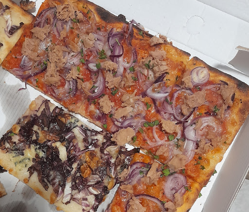 Abbiamo ordinato una pala. Tonno e cipolla e radicchio e gorgonzola. Entrambe al momento dell'ordine descritte come "base Margherita la prima e base mozzarella la seconda". Arriva a casa la pizza che vedete in foto, praticamente pizza bianca con radicchio e pizza rossa con tonno... della mozzarella neanche l'ombra. Abbiamo riscaldato la pizza in forno aggiungendoci del formaggio...una cosa mai vista. Ma il bello è stato che la signora al telefono ci ha detto che la mozzarella era stata "assorbita" dalla pizza e che evidentemente siamo abituati a mangiare male. Capisco il periodo non roseo ma risparmiare sulla mozzarella che è la base di una pizza non mettendocela neanche mi sembra un po eccessivo. Diciamo che la signora al telefono non ha voluto ammettere la dimenticanza. In tutto ciò 40 euro una pala 4 fritti e una coca...che dire di più! Non andateci e non mangiate la pizza qui ! Sia per la qualità ma anche per la pochissima professionalità di chi ci...