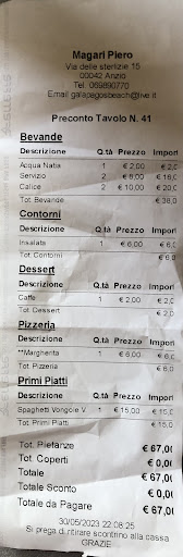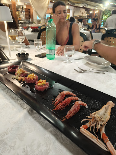 Read moreUna grande delusione. Eravamo clienti abituali fino a qualche anno fa, ci piaceva per la cortesia dei proprietari e per il buon cibo da mangiare con la vista sul mare. Siamo tornati qualche sera fa, il ristorante si è ingrandito a discapito della spiaggia, hanno coperto tutto con gli ombrelloni per creare più spazio per i tavoli, ma così non tira più un filo d'aria. I tavoli sono triplicati, ma evidentemente le lavatrici per il lavaggio delle tovaglie no, perché la nostra oltre ad essere stropicciata era anche macchiata di sugo. Ho avuto la sensazione che fosse stata solo rigirata dal pranzo (era al contrario), mi auguro di sbagliarmi. Stessa situazione per i tovaglioli, lavati ma stropicciati. Siamo stati accolti da un cameriere che ci ha chiesto se volevamo un aperitivo, gli abbiamo detto di no, ha insistito chiedendoci se volevamo delle bollicine come aperitivo, gli abbiamo ripetuto di no, che eravamo astemi, ci ha riso in faccia e ci ha preso in giro per questo. L' antipasto deludente, un "trionfo" che di trionfale non aveva proprio niente. Gli stessi 3 ingredienti rigirati nello stesso piatto a formare 10 cose diverse. Risotto alla crema di scampi senza infamia e senza lode. Nel frattempo ci siamo sorbiti la serata con lo stornellatore, colpa nostra che non ci eravamo informati che ci fosse lo spettacolo. Lo stornellatore e il suo gruppo erano pure bravi, ma chiassosi, e ce li siamo trovati attaccati al nostro tavolo per metà della cena. E visto che stavamo al centro della sala vicino al tavolo dell' aperitivo c'era un via vai di camerieri che preparavano e portavano cocktail ai tavoli intorno a noi (sopravoliamo sul fatto che il cameriere di cui sopra preparava le bevande prendendo il ghiaccio con le mani, le stesse con cui puliva i tavoli e portava i piatti... vabbè menomale che non abbiamo preso gli aperitivi). Insomma una cena in mezzo al caos, tra camerieri che passavano intorno al nostro tavolo e gente che cantava attaccata alla mia sedia, il tutto condito da un caldo afoso. Il meglio è arrivato in fondo quando ci siamo messi in fila per il conto, ci è stato comunicato l' importo a voce e dopo il pagamento non è stata emessa alcuna ricevuta fiscale. Alla mia richiesta di avere un attestato di pagamento ci siamo spostati alla cassa del bar, dove ci hanno fatto uno scontrino fiscale senza alcuna specifica di ciò che era stato consumato, lo scontrino riportava la dicitura "vario". Insomma un bel casino. Peccato, era un posto carino, ci siamo venuti tante volte e ci eravamo sempre trovati bene, ma questa ultima esperienza è stata molto deludente. Hanno voluto ingrandire il business, ma a discapito della qualità....