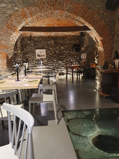 La sala degustazione/ristorante, situata nel piano inferiore, è un ambiente suggestivo e unico: un’atmosfera intima, avvolta dalle mura in pietra, che rende l’esperienza ancora più immersiva. Qui è possibile degustare formaggi e prodotti locali accompagnati da una selezione di vini altrettanto interessante, con etichette che valorizzano soprattutto le eccellenze del territorio.