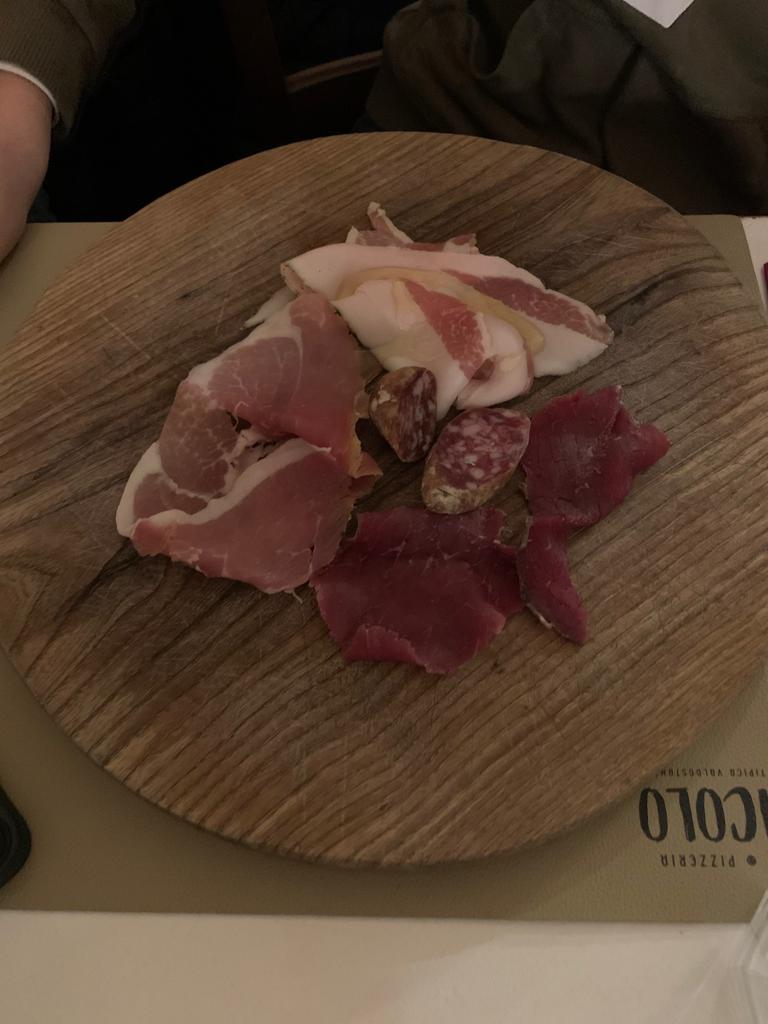 irretiti dal menu fisso 15€ veniamo attirati in questa trappola per turisti intenzionati a prenderci anche una bella ciucca vista la giornata in mezzo al freddo e la neve: i taglieri di salumi, sono gia mezzi pronti in attesa di essere ordinati: il risultato è che gli affettati gia affettati e appoggiati sul tagliere ovviamente arrivano secchi ed ossidati, unica nota positiva il lardo. dei 2 piatti compresi nel menu gli gnocchi alla bava (che forse erano effettivamente conditi con la bava a giudicare dal sapore nullo) che dovrebbero essere con panna e formaggi, non di meno, un piatto di listino a 10€ non sapevano di nulla! buona la pasta degli gnocchi e la cottura, ma come condimento avrebbero fatto piu bella figura con olio prezzemolo e grana. altro piatto cannelloni al sugo...anche qui il nulla in bocca, solo bruciore visto che arrivano con anche la ciotola incandescente per il motivo che indicherò piu avanti. altro piatto da menu "la polenta concia" spacciata per prodotto tipico in realtà è una normalissima polenta valsugana di grano saraceno con troppa acqua per allungarla e con del burro sciolto e incrostato sopra, ed anche qui, di polenta, nemmeno il sapore. Visto l'andazzo ho ordinato FUORI MENU un controfiletto ai porcini ordinato al sangue (come dev'essere)... è arrivata una scaloppina da forse 70g spessa a dir tanto 6mm appena rosa in qualche punto.