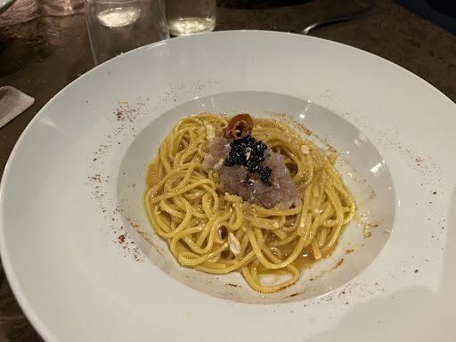 When we arrived a girl was sitting at the desk with her phone and headphones, therefore she didn’t noticed us for some moments even though we were calling her, and when she did she was really careless and dazed. The owner was also the only waitress, and even though the place was quite little with around 20 people, she couldn’t really manage the situation, creating a lot of delays. We had to wait a lot to get our command and when we asked for clarifications about the menu the was quite annoyed. Despite the pretty bad service, I looooved the food! The starter and the dessert were the BEST!! It is a bit pricey though, 68€ for a shared starter, 2 first courses and a shared dessert with a...