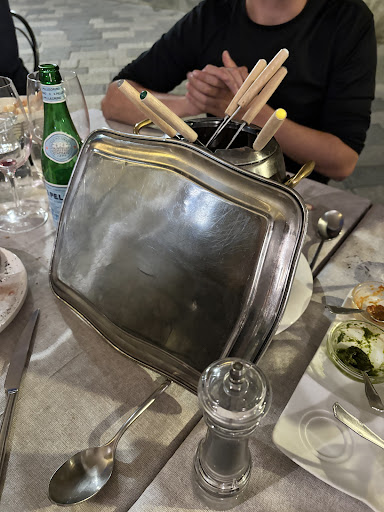 We were a group of four and ordered the trout, the fonduta, and the bourguignonne to share. The owner, who was serving us, seemed surprised by our order and his demeanour was rude and abrupt, so we double-checked with his son, the other server, asking whether ordering both fonduta and bourguignonne would be too much. He reassured us that it was fine, explaining that we could enjoy the fonduta while the bourguignonne cooked.