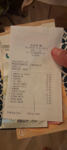 Read moreDescrizione generale: un'esperienza disastrosa. Volevo offrire una cena divertente a mia figlia che compiva 15 anni e non è stato possibile. Quando ho prenotato volevo sapere se potevo portare la mia torta e mi è stato detto che avrebbero richiamato, mai fatto (questo avrebbe dovuto darmi un'indicazione di cosa sarebbe successo, ma la mia prima impressione del menu era buona, quindi sono andato avanti ). Il menu offriva lasagne, e un sabato alle 8:15 mi hanno detto: non ce n'è. Il cóctel: piña colada dal sapore abbastanza semplice, la sconsiglio. Per iniziare abbiamo ordinato una pizza e gnocchi, consiglio solo la pizza. Dopo aver aspettato più di un quarto d'ora, fino a quando un cameriere si è sorpreso che non avessimo mangiato nulla per così tanto tempo, é andato in cucina per verificare che fosse portato al nostro tavolo, finalmente arrivò il pollo crudo. Siamo rimasti sorpresi che quando abbiamo chiesto dell'acqua, ci hanno chiesto se volevamo i bicchieri: ci siamo guardati tutti e abbiamo detto: "fai finta di bere direttamente dalla bottiglia". In sintesi: volevo fare un regalo a mia figlia per il suo compleanno, sua amica, ho invitato un'amica viaggiatrice che veniva ad Aosta per la prima volta (a parte mio marito e l'altra mia figlia) e non sono riuscita ad avere un minimo di buon servizio. Mi volevano premiare con dei pezzi di pizza dolce e uno "sconto" di 3 euro,...