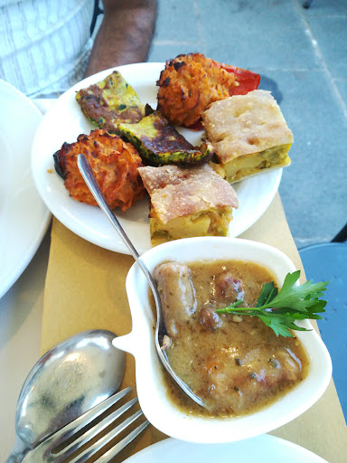 Horrible service and underwhelming food. Unfortunately so, because the square where the restaurant is located is nice nonetheless. Younger waiter is rather intrusive and showoff-y, often making off-putting comments to the guests; the kind of person who lacks a genuine sense of humor and doesn't understand when it would be wiser to change approach. We felt embarrassed for him. A real shame, considering the historical importance of the location itself, where one would assume being treated accordingly. Dinner was mediocre, your typical tourist trap. Forget the vegetarian lasagna, with supermarket-style pesto smeared over...an insult to a classic dish, which quite frankly is hard to get so wrong. Completely undeserving of the...
