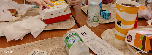 Read moreChe dire di McDonald's? Fosse per me, la catena sarebbe già fallita da un pezzo! Cibo di qualità pessima e logiche lontane anni luce dalla cultura del cibo che abbiamo in Italia. Ma ai ragazzi (e ai bambini) piace... Piace perché si spende poco e consente di passare un po' di tempo insieme senza svenarsi... Una volta, erano le pizzerie a fornire questa possibilità, ma oggi nelle pizzerie si spende lo stesso che in ristorante è quindi... trionfa il junk food! Nello specifico, questo McDonald's ha un vantaggio: è in un area di ristorazione del Centro Commerciale e, per questo, attaccato ad una pizzeria, ad un altro ristorante di pasta espressa, ecc. Questo offre la possibilità di accontentare i vostri bimbi prelevando i menù McDonald's e portandoli al tavolo dove voi potrete mangiare qualcosa di normale ordinato in uno degli altri punti di...