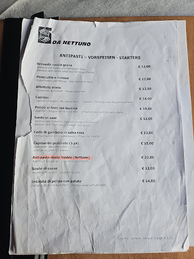 Menú culinario ☆☆☆☆ completo, piatti principalmente a base di pesce, qualche piatto di carne e qualche vegetariano, buoni i prezzi... la parte di menú dedicata alle pizze, ampio e variegato.
