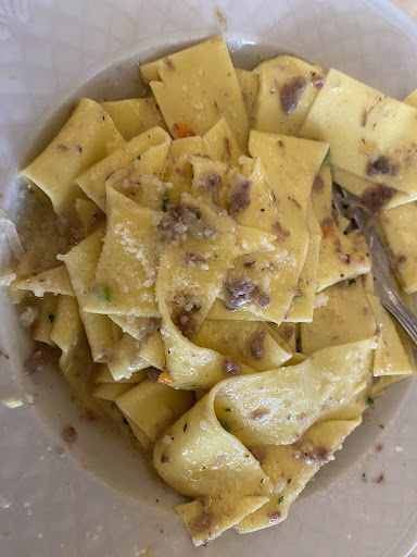 Read moreQuesta recensione fa riferimento alla mia esperienza personale di sabato 19 agosto 2023. Eravamo in 5 a mangiare. Non è la prima volta che mangiamo in questo ristorante e devo dire che ne avevo anche un ricordo abbastanza positivo, peccato solo che l'ultima volta si sia rivelato un'autentica delusione. Il servizio è stato lento e disorganizzato come pochi, oltre 40 minuti per vedersi servire l'antipasto di salumi e formaggi (per amor di verità devo riconoscere che era ottimo, ma non basta per salvare quella giornata dal disastro totale). Un'attesa così estenuante, per una portata che per sua natura andrebbe servita in tempi rapidi, già farei fatica ad accettarla in un ristorante gremito, figuriamoci in un ristorante che a quell'ora non era pieno neanche per metà. La vera nota dolente arriverà però con i primi: il piatto di pasta alla chitarra al peperone di Altino con gli asparagi e il tartufo nero (c.d. "chitarrina erotica") era davvero insapore come pochi. Il sugo non sapeva di niente e a livello olfattivo anziché sprigionare dei buoni sapori, sprigionava praticamente il vapore acqueo. Anche il piatto di pappardelle al ragù di lepre ordinato dalla mia ragazza era altrettanto insignificante e insapore. In tutto questo, la cosa peggiore è stata che erano tra le 13:30 e le 14, vedo un signore che era interessato a mangiare al ristorante, chiede alla titolare se c'era posto, e nonostante il locale non fosse occupato neppure per tre quarti, si sente rispondere dalla titolare "siamo incasinatissimi... Stiamo facendo i primi e i secondi". Tale risposta trovo che sia semplicemente inqualificabile per almeno due ragioni: 1. Avere un locale pieno per almeno tre quarti, se non addirittura completamente, non dovrebbe essere sinonimo di "incasinatissimo", ma ordinaria amministrazione per chi gestisce un ristorante; 2. Ma che risposta è "stiamo facendo i primi e i secondi"? Siete un ristorante, diamine! State solo svolgendo il vostro lavoro. Sarà forse stata una giornata particolarmente sfortunata, ma in quel sabato d'agosto ci ho davvero visto tanto, troppo dilettantismo. Il personale sembrava non avere la più la pallida idea di cosa volesse dire gestire un...