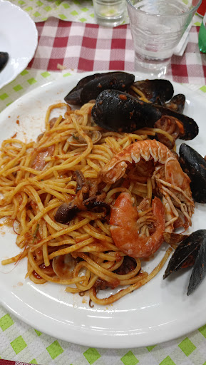 Read moreTrouver par hasard, nous avons été très agréablement surpris. Trattoria de quartier typique, nous avons mangé des plats savoureux ( on sentait bien qu'ils étaient fait maison ) et copieusement servi ( fritura mista, fettucine alla boscaiola, allo scoglio, risotto alla crema di scampi ). Toute l'équipe, de la très souriante serveuse au patron est très accueillante. Les prix sont imbattables, bref vraiment une adresse au top. Merci à toute l'équipe pour le bon moment que nous avons passé...