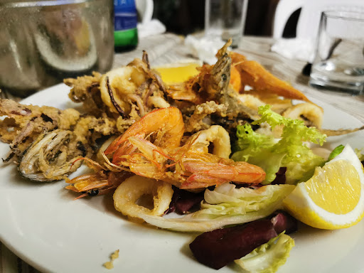 La frittura faceva ridere ...l'impanatura non male,ma all'interno il calamaro Ve lo giuro sapeva di nulla... E noi non siamo tipi che lasciamo le cose nel piatto , assolutamente,ma stavolta non abbiamo proprio potuto farne a meno.