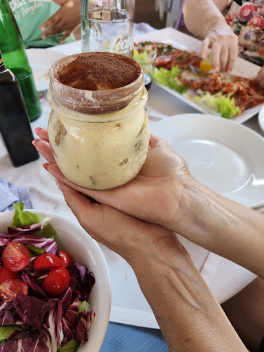 Read moreBellissima realtà a Colle Romito, vicino market Gesad. Innanzitutto un plauso ai camerieri, gentili, cortesi, disponibili e competenti. È un bel locale, da fuori non rende, entrata piccola ma appena superato l ingresso si apre una bella sala, dalla quale poi si esce su un'altra molto ampia ed esterna. L ambiente è marittimo, giustamente, pratico ed elegante al contempo, con scritte sui muri, delle perle di saggezza. Il servizio è stato rapido, non c era molta gente ma oggi è già 3 settembre, molti sono rientrati. Abbiamo preso antipasto completo tra crudo e cotto ...delizioso e sfizioso...soute’ di cozze perfetto, 2 primi....erano molto abbondanti e ottimi, soprattutto i paccheri grigia di mare.....poi gamberoni (ben 8 pezzi enormi) ed una spigola pescata, con insalata e verdure grigliate. Tiramisù da urlo e bis. Caffè e bevande acqua e coca cola. Totale 210 euro. Devo dire tutto perfetto , anche il prezzo data la qualità e quantità va molto bene, d altronde il buon pesce si paga, soprattutto i crudi. Allego foto... consigliato vivamente . Fanno anche da asporto e pizza solo la sera, al forno a legna, ovviamente. Bellissima scoperta. PS....Guardate il bagno, bella botticella ma, soprattutto, leggete...
