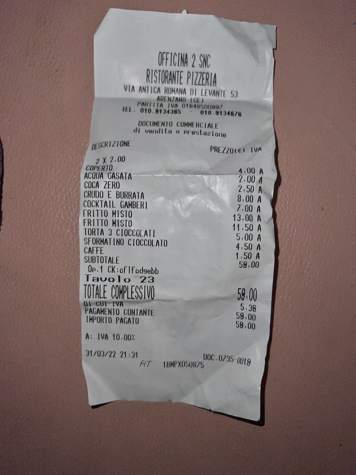 Read moreThe location is the best.!! There is a saying 'Roof top of the world' and so rightly so. The view was excellent, you could see many parts of Arenzano from the restaurant. The food prices are equally affordable considering the location, highly recommend. You do need a car to get here or manage the 10 min walk-up hill from Arenzano main street. Not for the faint-hearted. Thursday night we came was particularly busy, and many orders came out slow, or food arrived we didn't order. It is understandable considering the number of people to cater to. As I said, the food...